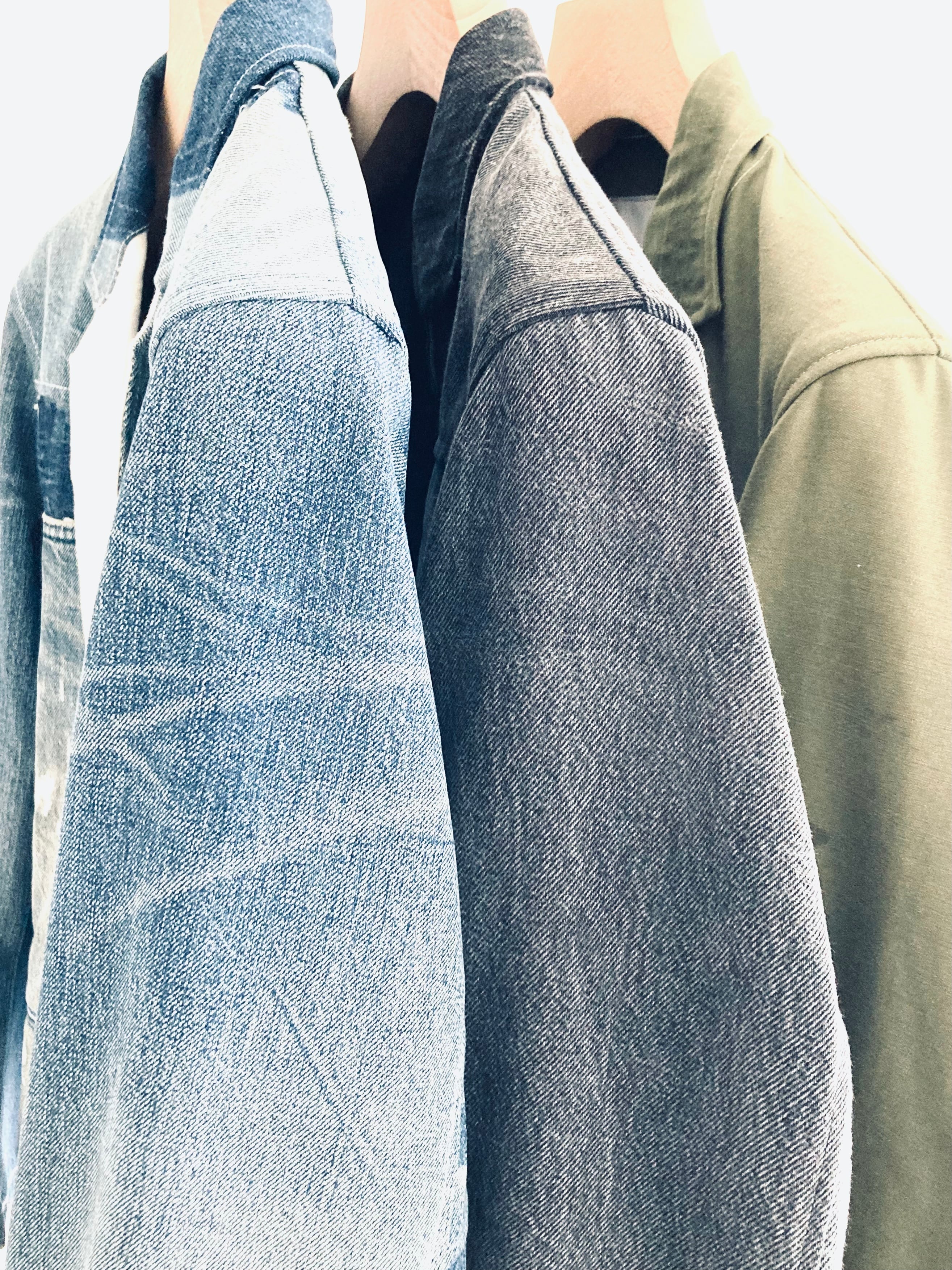 特に、縫製については、縫い損じやステッチの曲がり、滑脱などがあるかと思いますが、それも、生地のダメージと同様、服としての味として楽しんでいただけたらありがたい限りです。